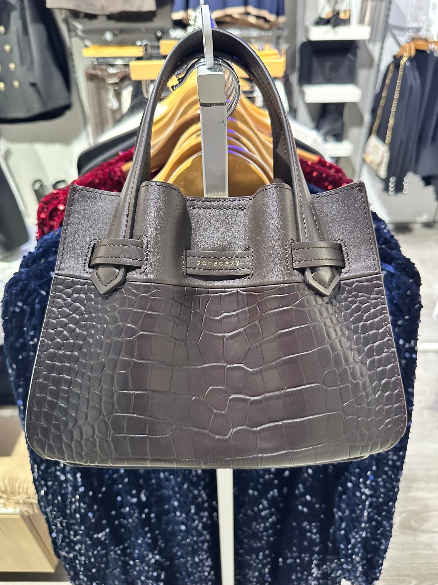 Laget i mykt, brunt skinn. En nett og elegant veske med fine detaljer og et diskret hint av gull. Lukkes med glidelås og kommer med lang stropp slik at den også kan bæres crossover.