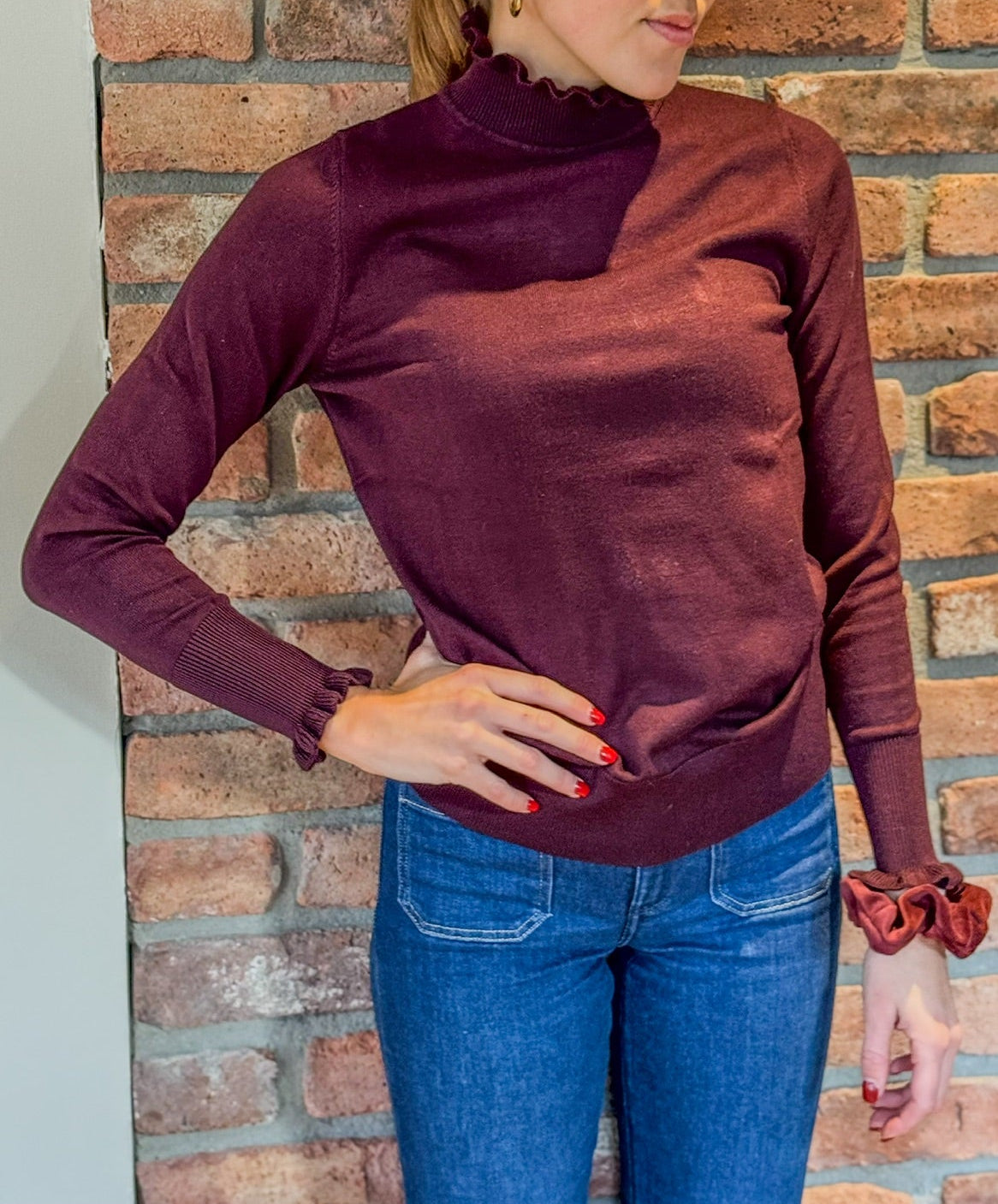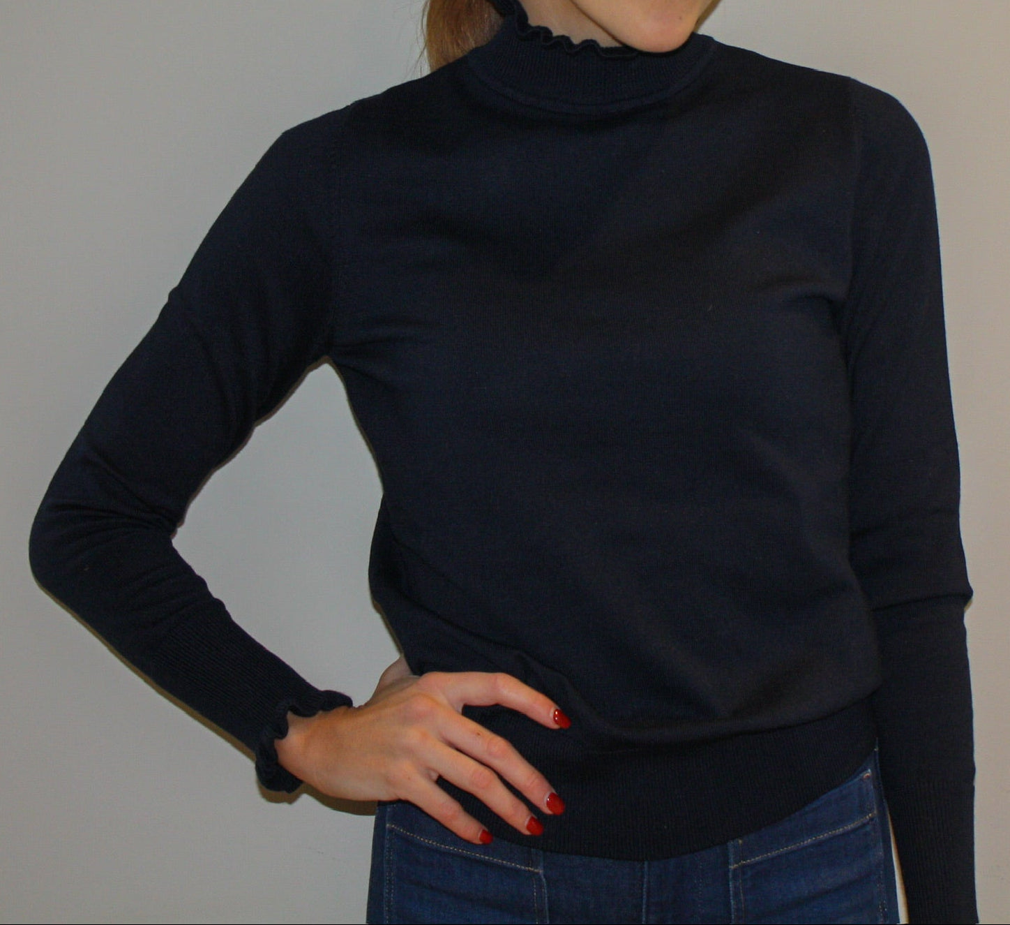 En tidløs og elegant genser fra Alma, laget i en myk og behagelig viskoseblanding med 20% nylon for ekstra holdbarhet. Genseren har et rent og klassisk uttrykk med delikate detaljer i halsen som gir et feminint preg. Finnes i to nydelige farger – port og marineblå – perfekt både til hverdags og jobb.