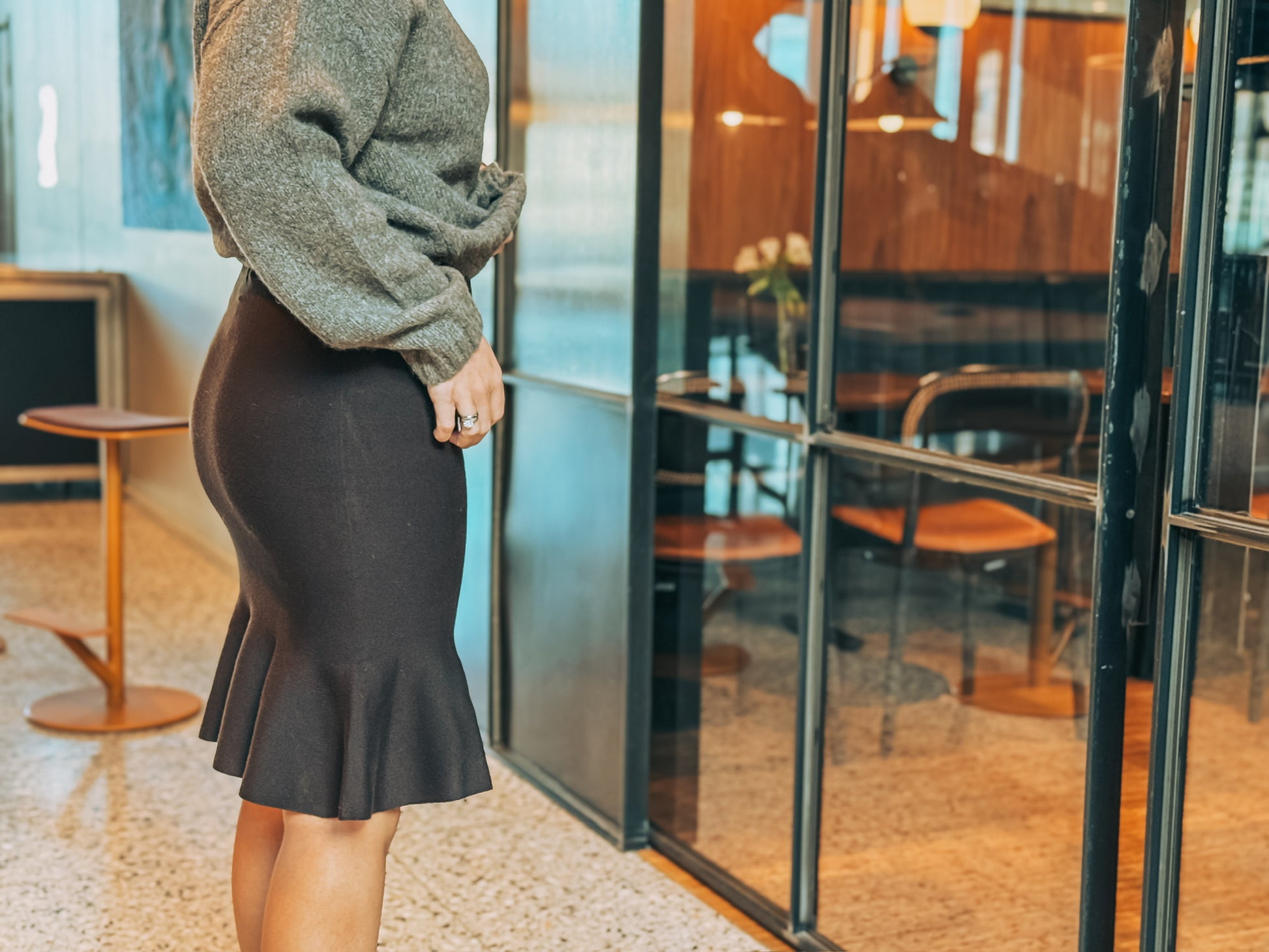Et feminint og komfortabelt skjørt fra ALMA, designet i et elastisk materiale som gir en smal og flatterende passform. Skjørtet har en utsvinget kant med myk volang som gir bevegelse og et lekkert, lekent uttrykk. Perfekt både til hverdags og penere anledninger – enkelt å style og alltid behagelig å bruke.