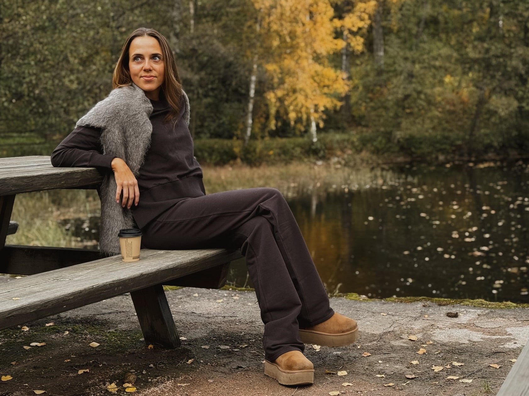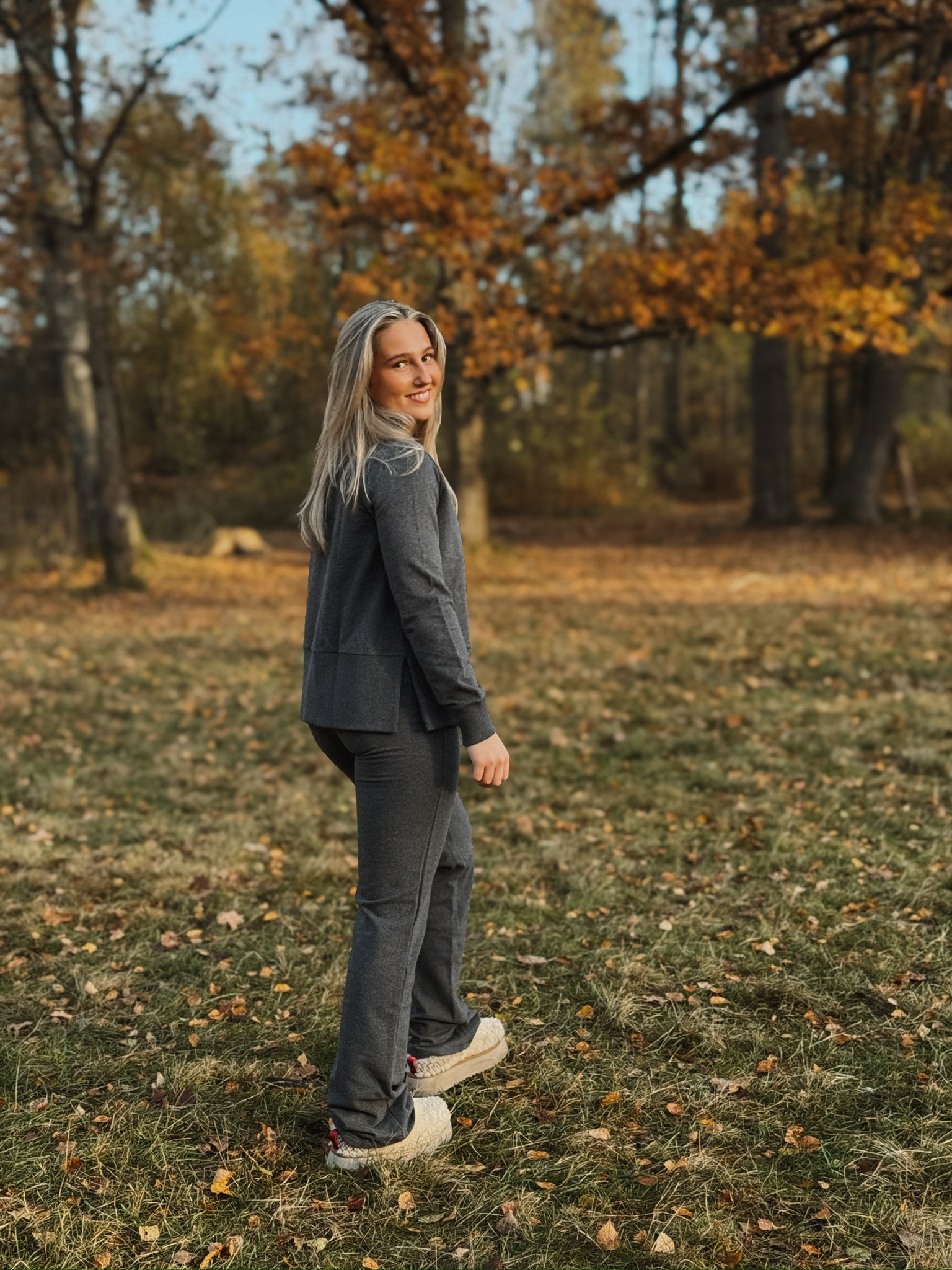 Denne buksen er laget av økologisk bomull, som har en myk finish som gjør denne buksen utrolig myk og god å ha på! Vide bukser som er rett i modellen med slynger. God stretch i stoffet og elastisk midje.